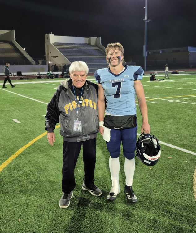 *Grayson Sack, Connor Haney, Jackson Gangwish, Garrett Watson-GICC -Sack completed 8 of 16 throws for 131 yards with a touchdown and rushed 15 times for 112 yards with an additional pair of TD runs covering 32 and 4 yards in the Crusaders 31-14 Class C-2 quarterfinal win over Archbishop Bergan. Big, rugged Connor Haney caught 4 passes for 95 yards with a 36 yard TD catch. Leading tackler, sophomore Jackson Gangwish led the GICC defense with 9 stops while freshman place kicker Garrett Watson was 4 of 4 on PAT attempts and 1 for 1 in field goal tries, nailing a 32 yarder in the game. If the name “Gangwish” rings a bell, Jackson’s dad, Matt Gangwish was one of the greatest football players in Shelton gridiron history, rushing for 1,013 yards in 1991 and 1,441 in ‘92. Mattie was also one of the most feared defensive players in the state, issuing Excedrin headaches with every crunching hit. Ask former Husker and Fullerton great Brian Schuster about one of those hits in 1992.