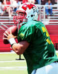 West team quarterback Trevor Wells of Medicine Valley looks for a open receiver Saturday in the Sertoma Eight-Man All-Star Classic in Hastings. Wells completed 17 of 18 passes for 148 yards and three touchdowns, and he added 22 yards on three carries with a 3-yard touchdown. Wells was named the offensive MVP for the West team. Wells connected with Eustis-Farnam's Drew Wetovick five times for 57 yards and one touchdown... -