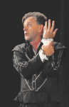 Tim Mooney performs the graveyard scene from an abridged version of Shakespeare's Hamlet, Tuesday at the Fox Theatre in downtown McCook. "Breakneck Hamlet" hit the high spots of the classic play, filling in the gaps with asides and explanations while holding the audience in rapt attention for an hour compared to four hours for the unabridged version. ... -