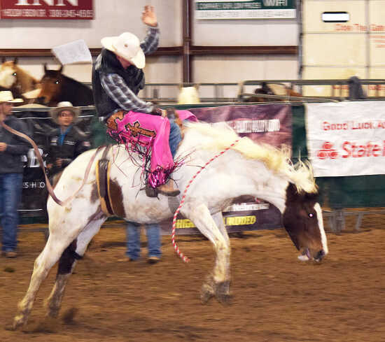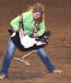 Tyrel Rieker of Lexington, Nebraska, and Rachael Calvo of Bassett were among the 300-or-so high school students who competed in two Southwest Nebraska High School rodeos Friday, Saturday and Sunday in the Kiplinger Arena in McCook. Tyrel's bareback horse came out on top of the horse-rider contest; Rachael tied her goat in 9.63 seconds. Rodeo results will become available later this week.