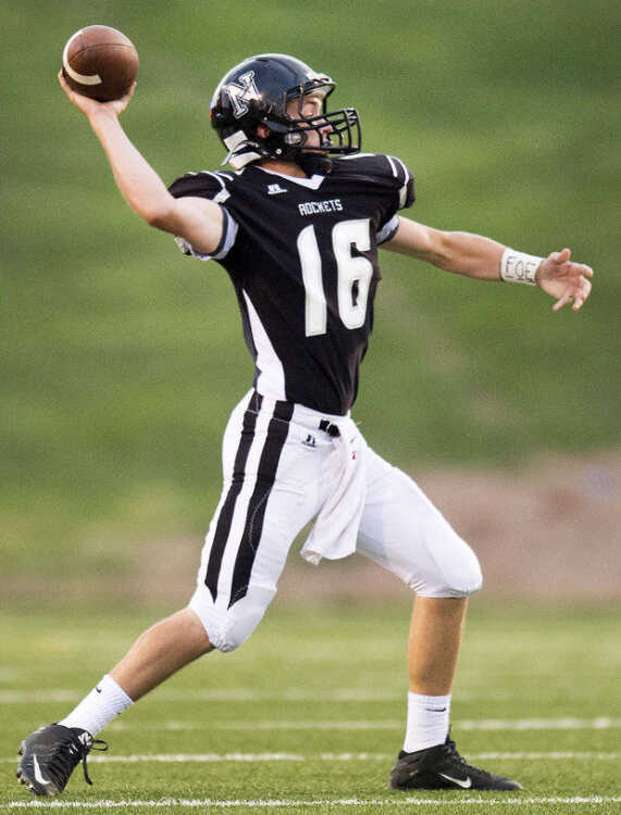 *Trevor Peterson-Lincoln Northeast - 6-0, 180 pound QB led his Rocket football team to a near upset road win over Norfolk before Northeast fell, 35-33. All Peterson did was complete 25 of 44 passes for 319 yards and 3 touchdowns, 2 coming in the opening quarter. The Rockets let Norfolk know they meant business, scoring on their first three possessions of the football game. Norfolk made some 2nd half adjustments and it's a good thing, because Peterson had burned the Panthers, going 20 for 29 with 246 yards and 2 touchdowns. Trevor Peterson will get his chance to bedevil Grand Island at Seacrest Field this Thursday.